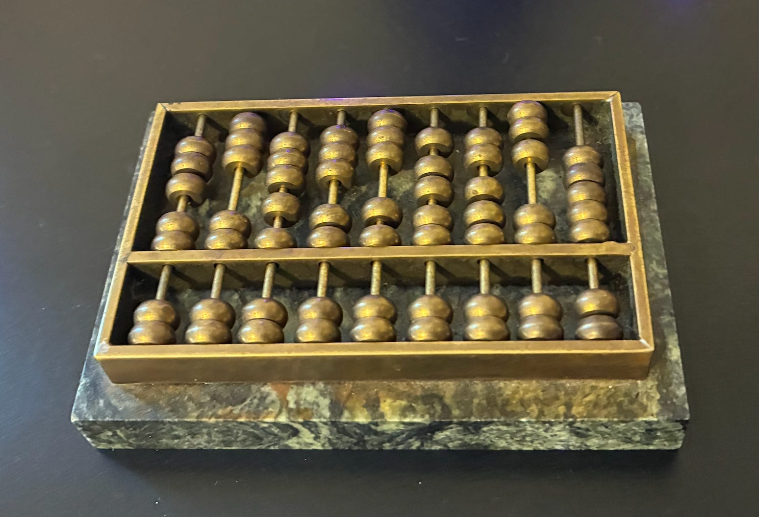 Josh Slocum gave me this abacus as a gift, because it’s a lovely green color that matches my aesthetic and he knows I love tactile objects that remind us how humans used to think.