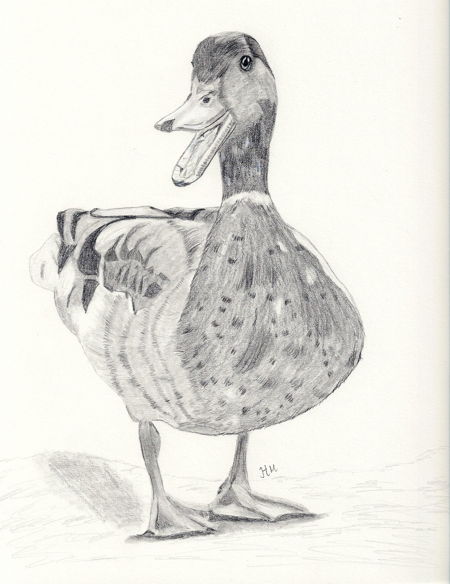 I’ve just added this fellow — the duck referred to in this post — to my listing of both prints and originals for sale. Prints are $40 plus shipping. If you’re interested in the original, email hollymathnerd at gmail dot com and make me an offer! It’s 8x10 on Strathmore 400 paper. There’s a little white gel pen in the eye but the rest is all graphite on this one. Buy here. Or go here if you’re interested in buying the original. Other prints and originals for sale are also listed here.