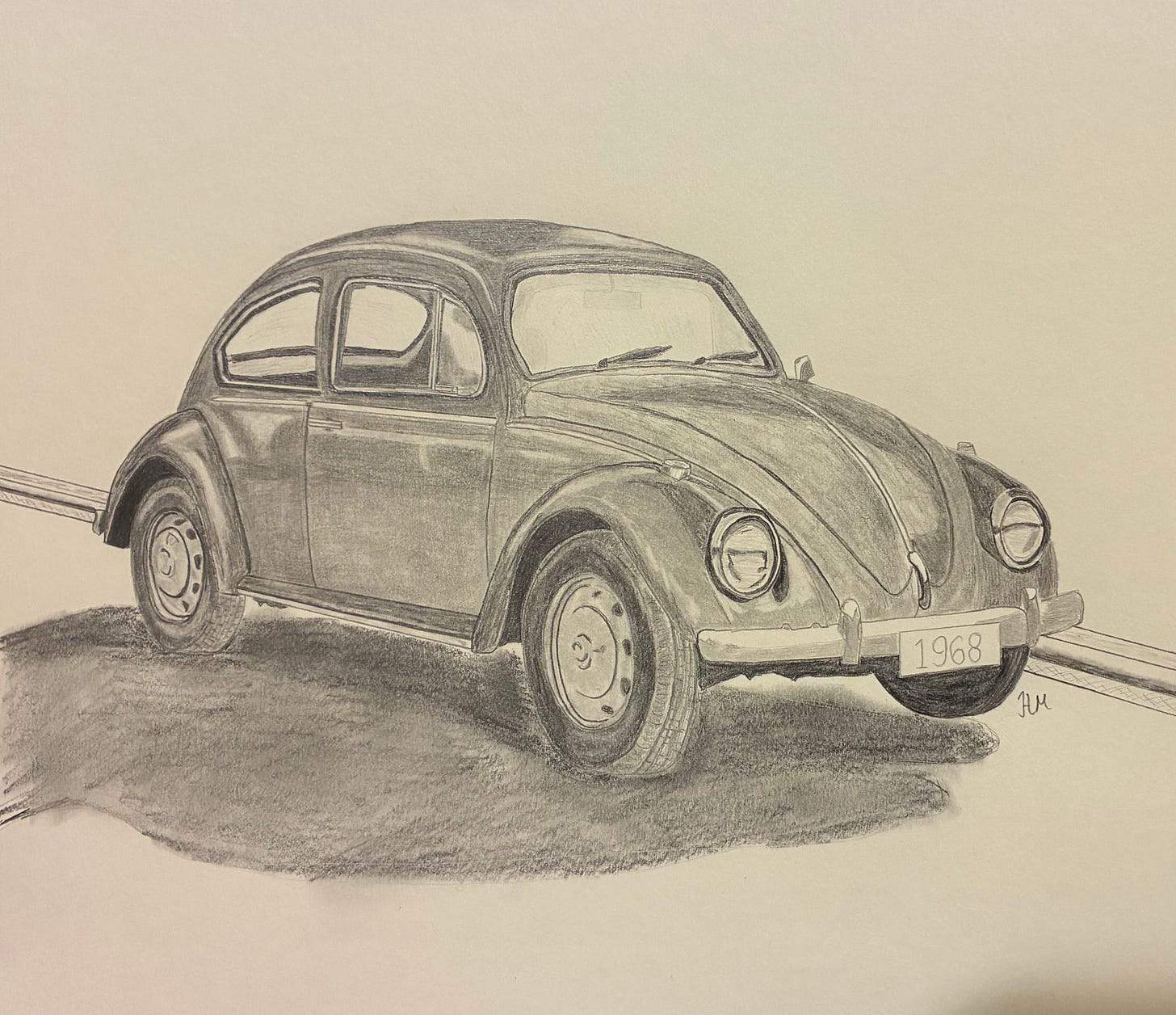 Sometimes it’s a nothingburger — I just need to draw something. My recent VW Bug pencil sketch, for instance, was practical: I wanted to practice before doing a color version as a gift for Josh.
