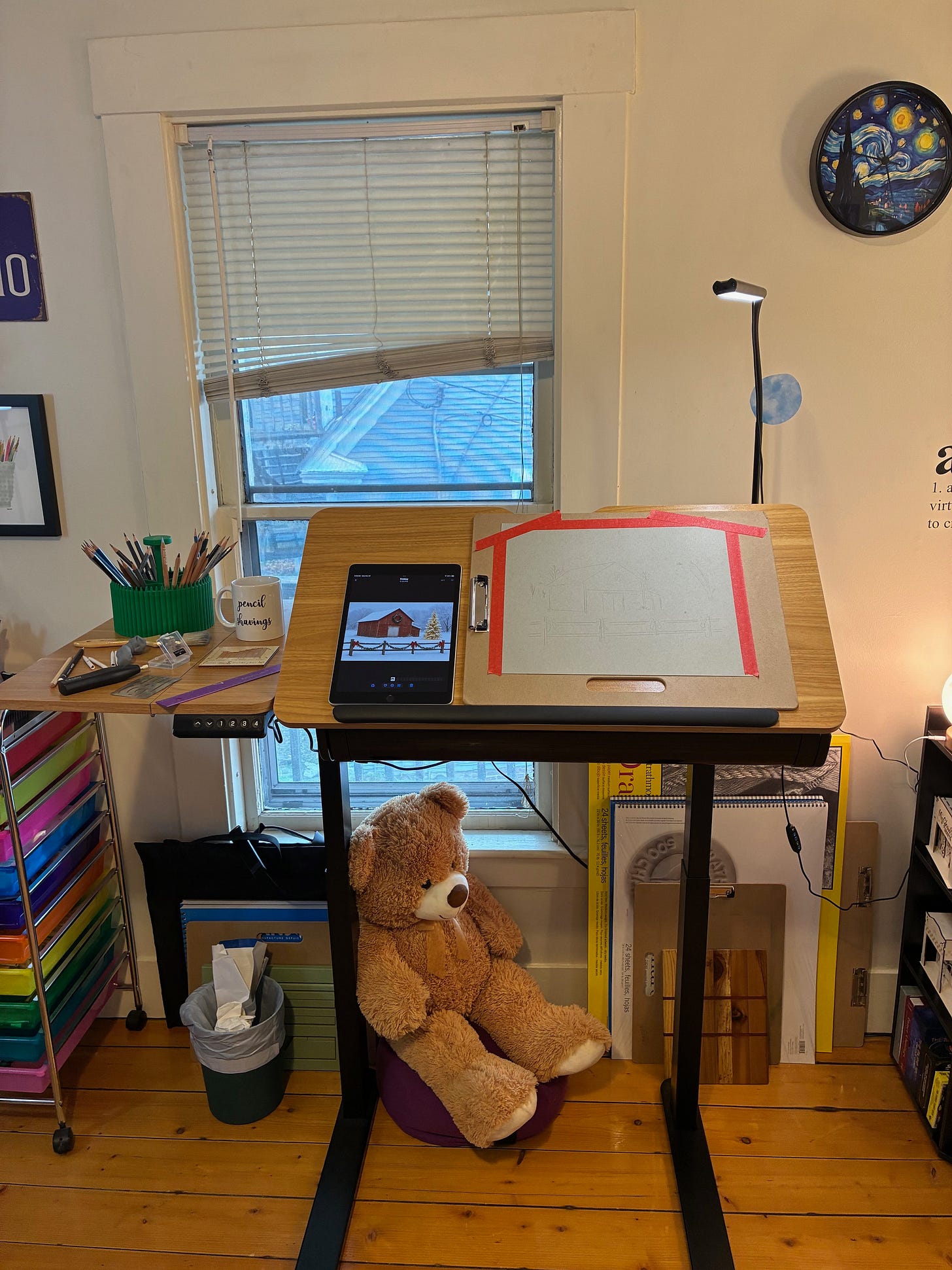 Next comes setup, otherwise known as “the part where normal people would just start drawing, but I instead stage a small logistical operation.”