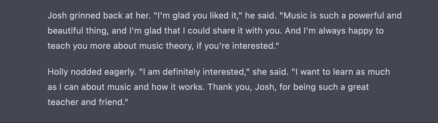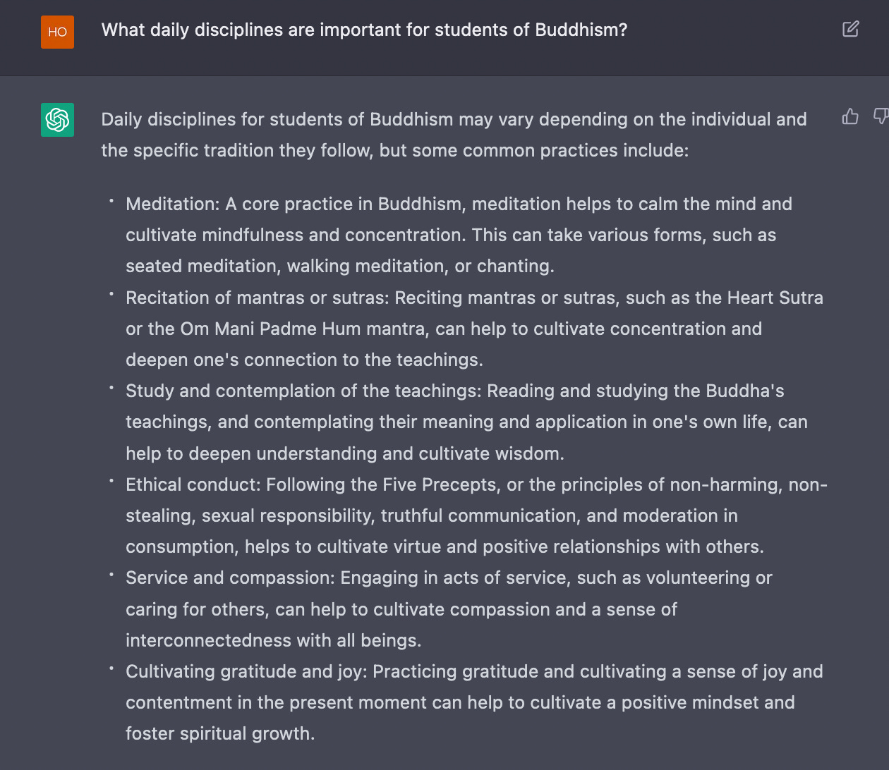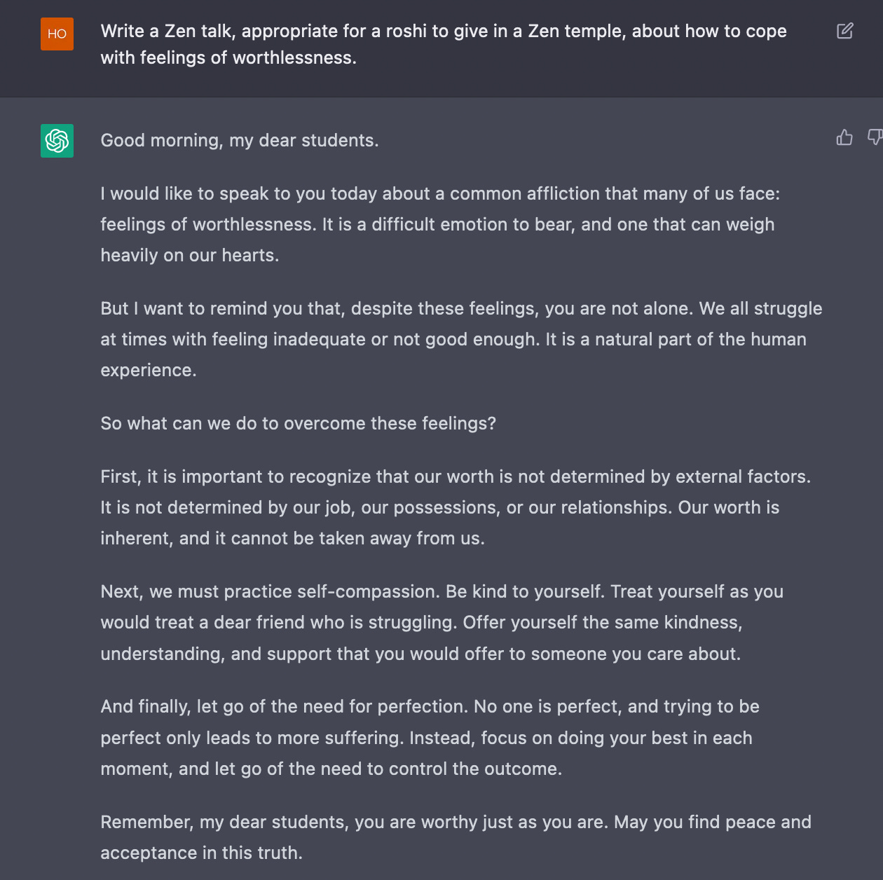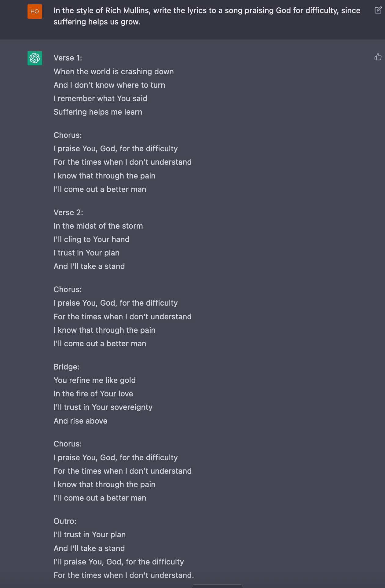 I asked it for descriptions of encounters I’ve actually had, to compare its attempt to reality; creative writing about people I know; questions about how to practice religion; a self-help plan; code snippets; mathematical proofs, and several other things, including spooky commentary on the present by figures from the past.