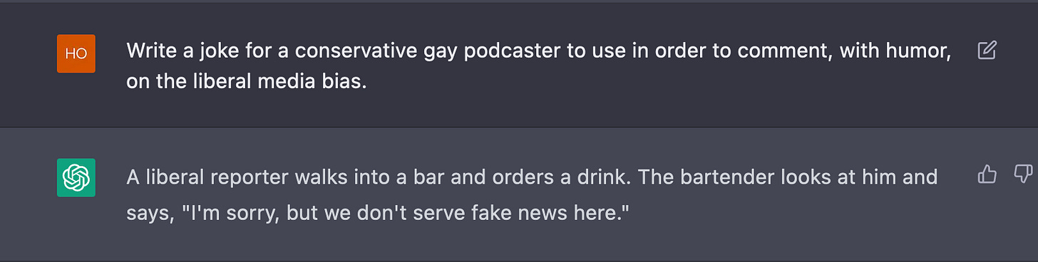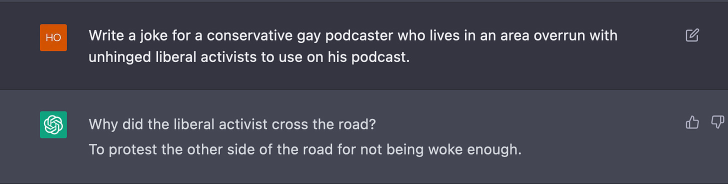 The woke-ification, for lack of a better word, of chatbots using AI is inevitable, but there is still a great deal of fun to be had here in the early days of such applications.