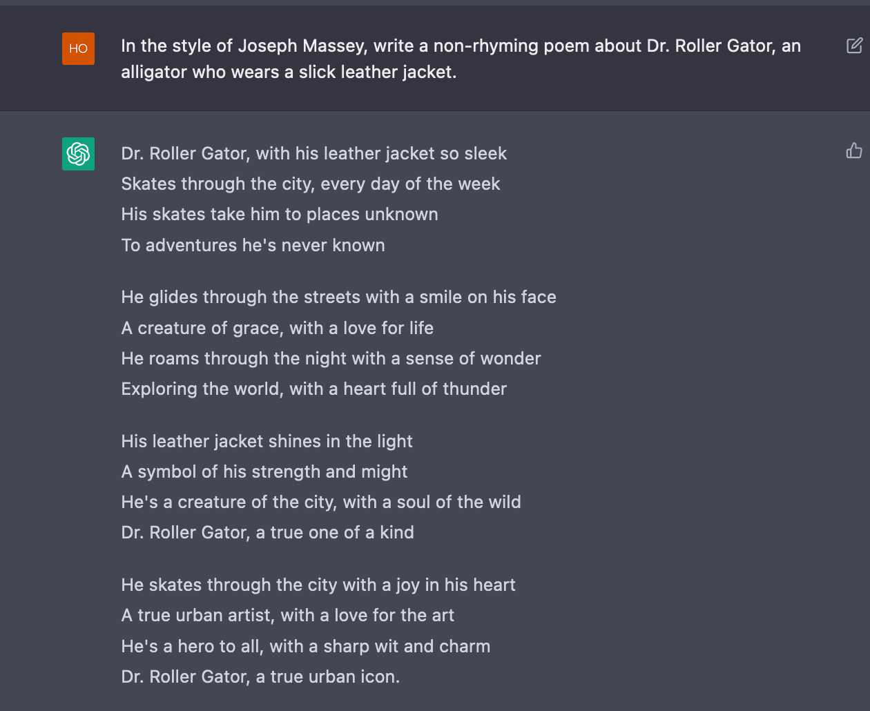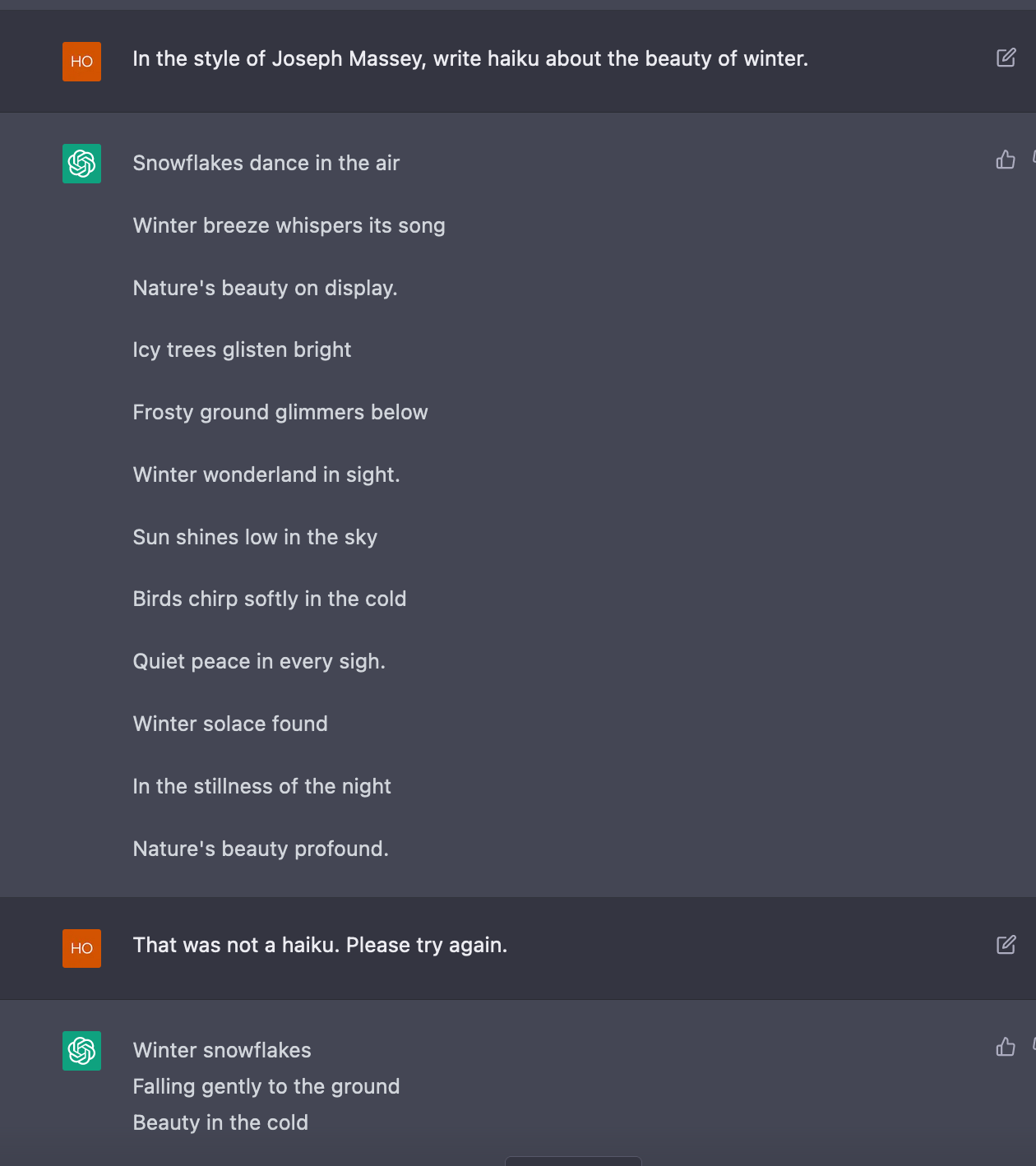 I have three more free subscriptions to Joseph Massey’s excellent poetry Substack to give away. Leave a comment or email me if you want one! Clearly the ChatGPT sucks at poetry, so get the good stuff.