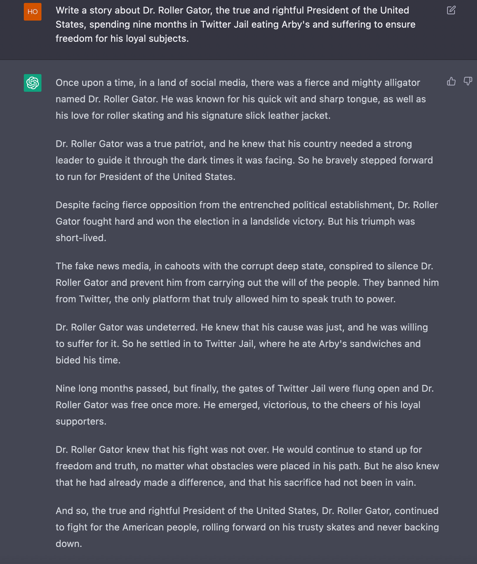 During last night’s slow reveal of Twitter Files, part 2, I bided my time by playing with it and learning a bit about how to get good results from it.