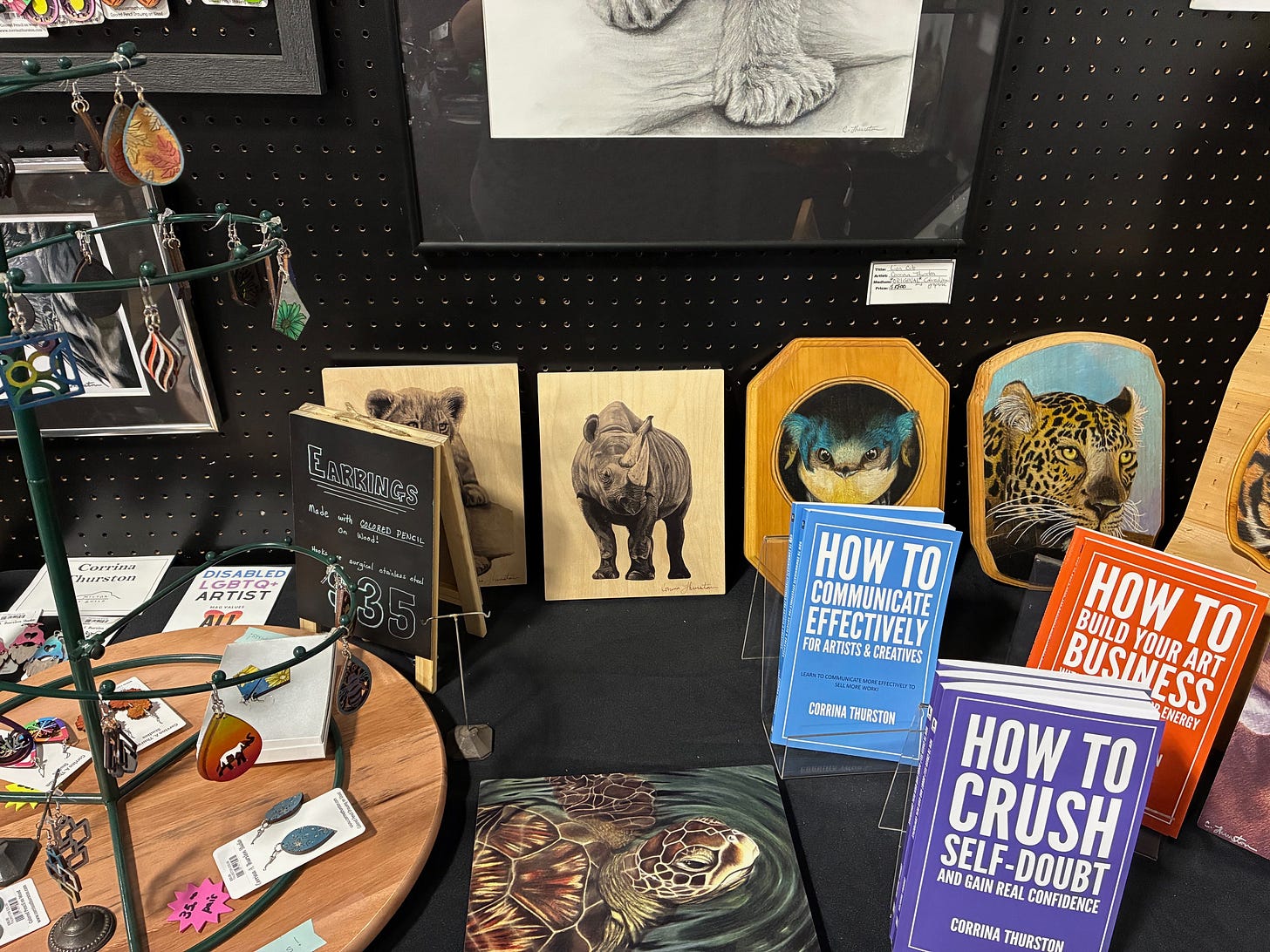 Regardless of prices, MAG was exactly the kind of place where temptation runs high. I wanted a lot of what I saw — paintings, colored pencil works, photography, jewelry, soap, honey, sculptures, whimsical crafts — but I limited myself to two prints I absolutely loved, plus a greeting card and some pumpkin pie–scented soap. I got out for under $100, which, considering my track record in art stores2, is a personal victory.