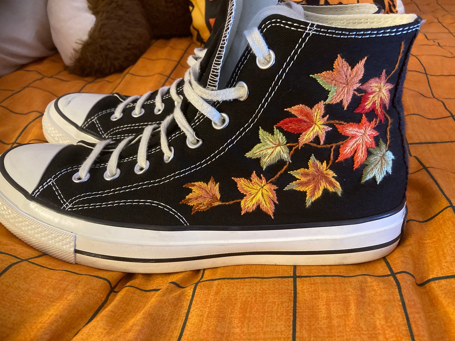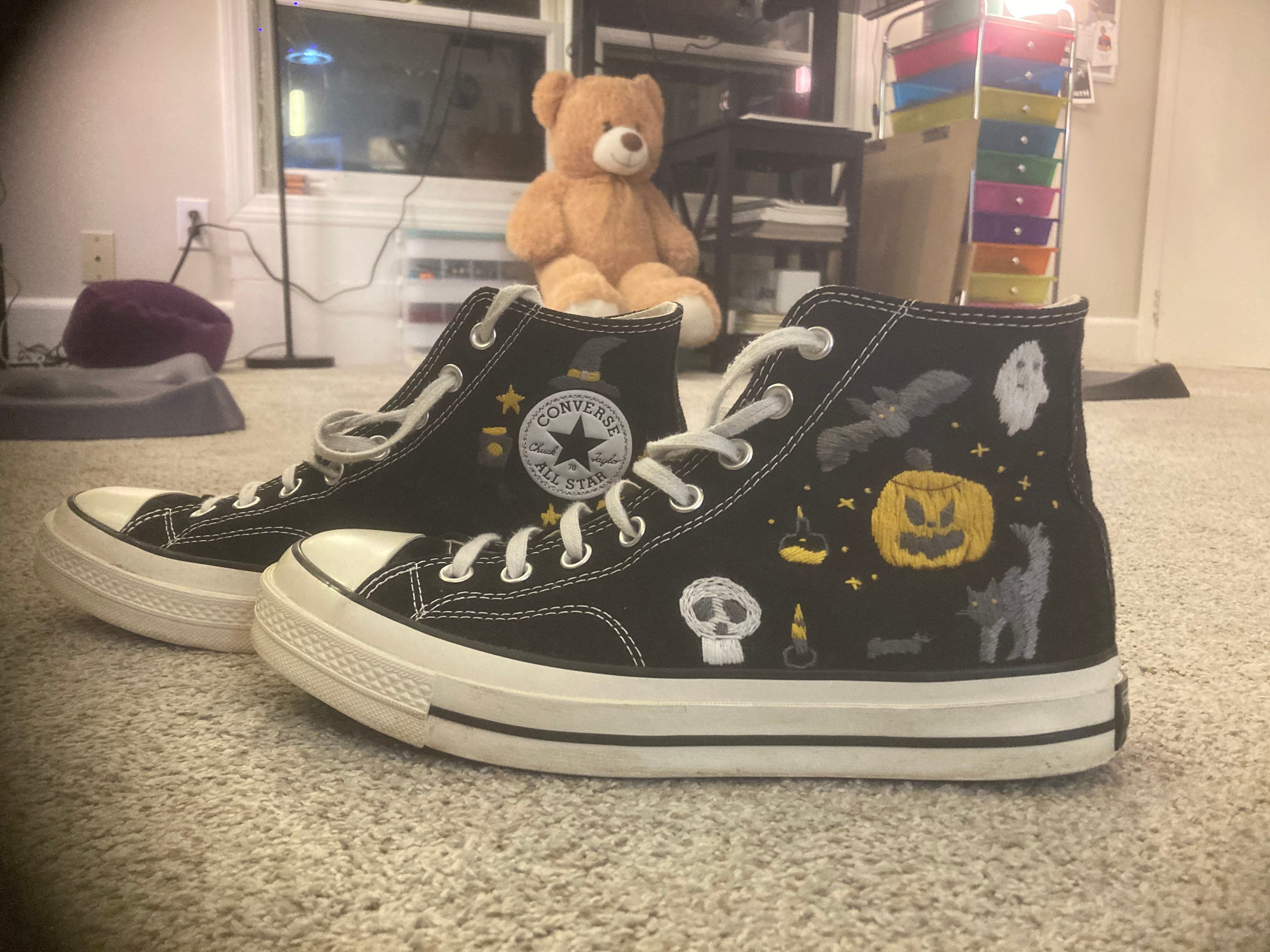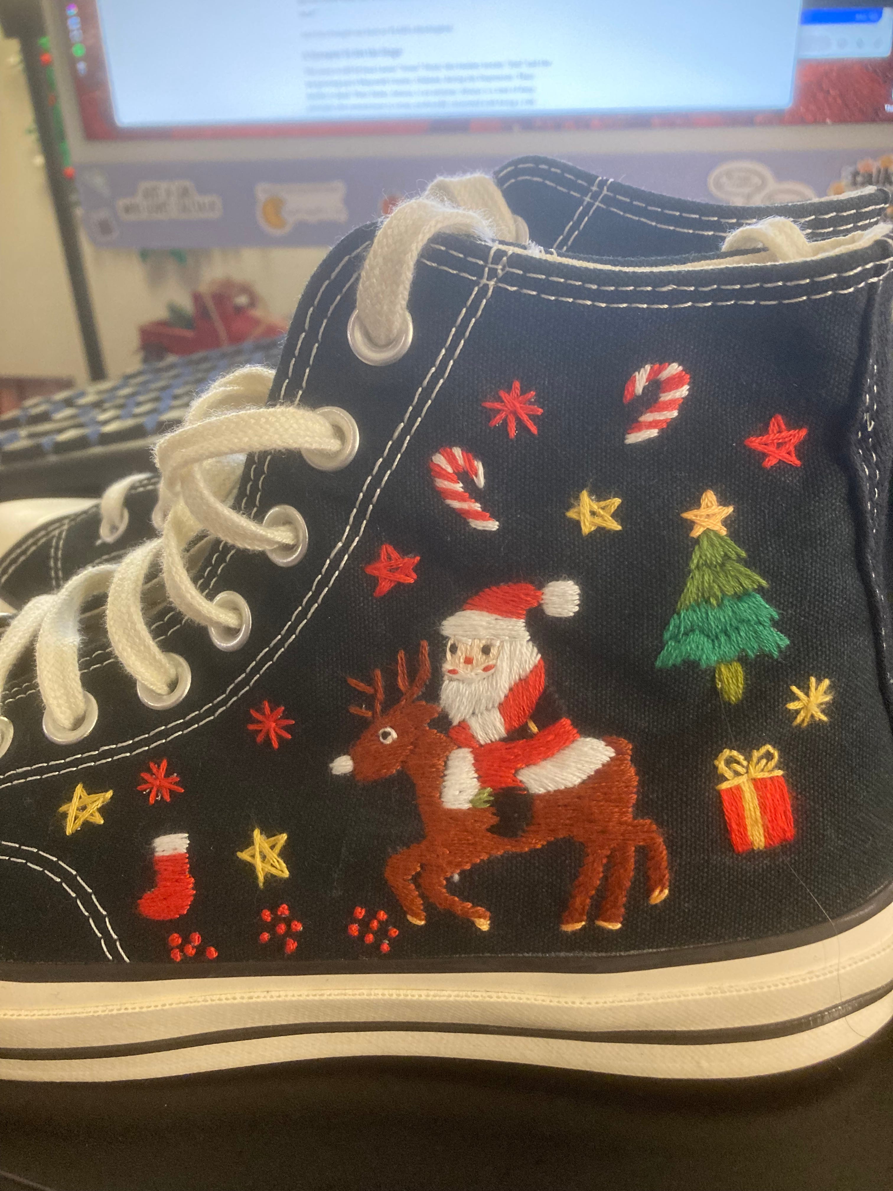 There are tons of Etsy sellers who hand-embroider Chuck Taylors — beautifully — for $20 to $30 more than the plain version you'd buy in-store. And the holiday-themed ones? They’ll last a decade or more, since I only wear them a few months each year.